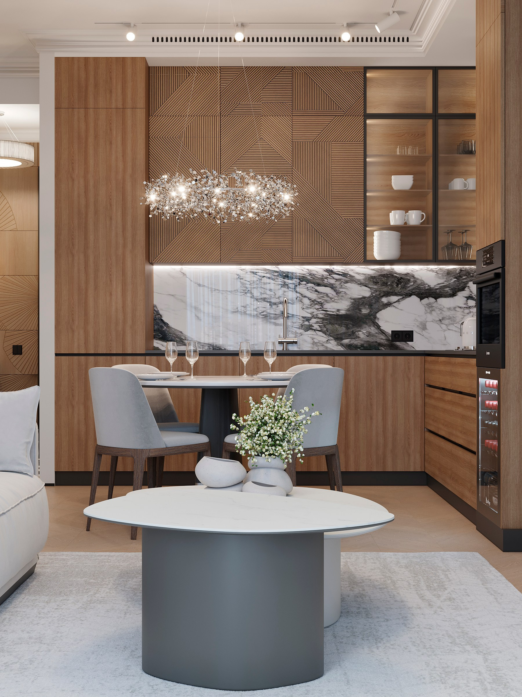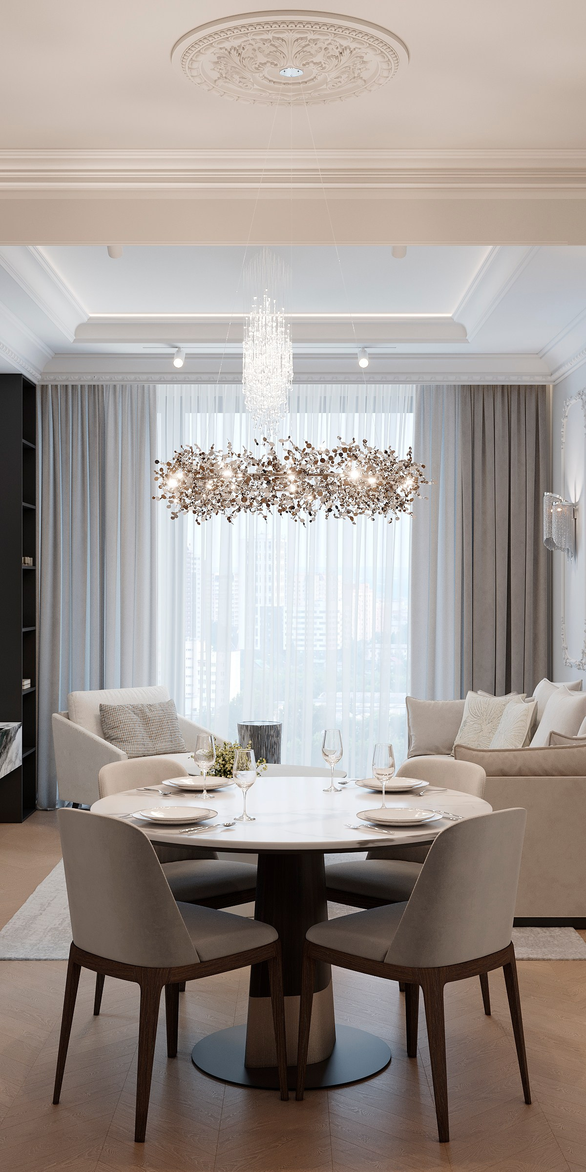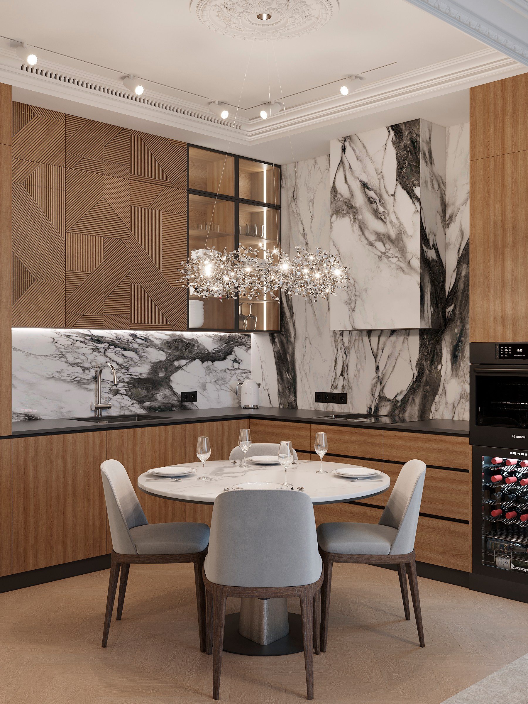 Проект для семьи, где ценится семейное время и красота в каждой детали! Планировка была доработа под задачи ежедневных сценариев, каждая комната отражает тонкий вкус и статус хозяев.